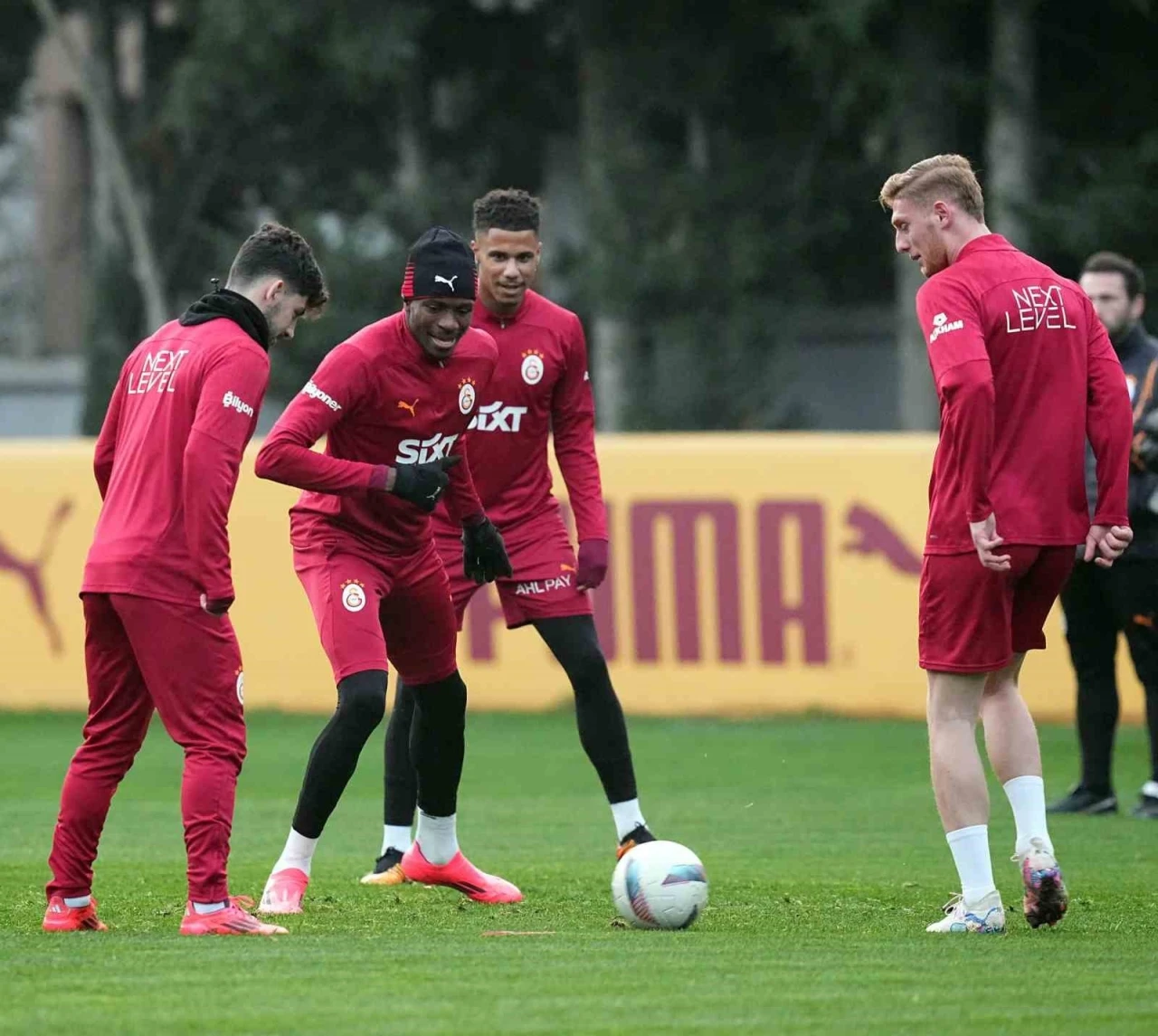 Florya Metin Oktay Tesisleri’nde, Teknik Direktör Okan Buruk yönetiminde dinamik ısınmayla başlayan idman, dört grup halinde 5’e 1 pas çalışmasıyla devam etti. Antrenman, topa sahip olma çalışmasının ardından dört takımlı turnuvayla sona erdi.