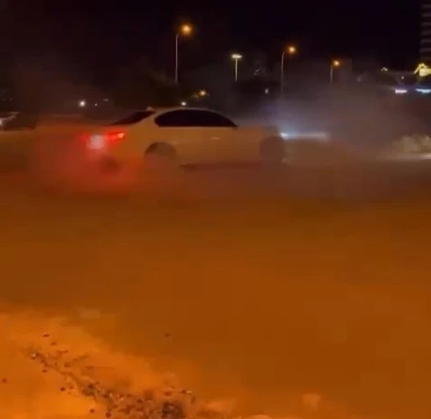 Aracın drift attığı anlar ise cep telefonu kamerasına yansıdı.