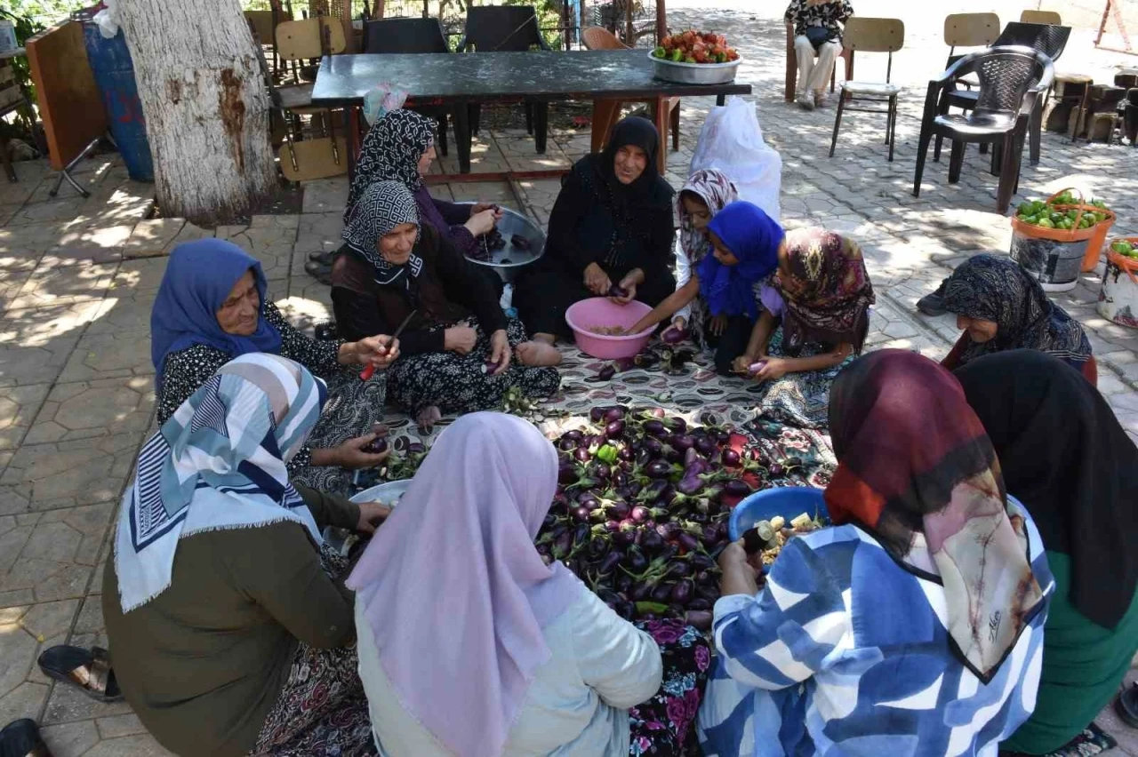 Her gün bir kişinin kurutmalığını hazırlayan kadınlar, akşama kadar çay ve sohbet eşliğinde özellikle kış aylarında mutfakların vazgeçilmezi arasında yer alan kurutmalıklar için yoğun bir mesai yapıyor. Güneşte kuruyan patlıcan, biber, kabak ve acurlar, kışın dolma olarak tüketiliyor. Bin bir emek ve zahmetle hazırlanan kurutmalıklar kış sofralarına ayrı lezzet katıyor.