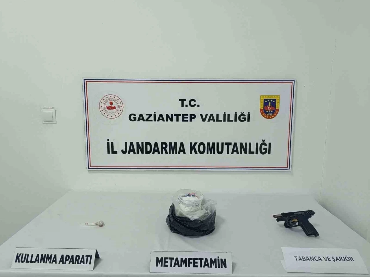 Gaziantep İl Jandarma Komutanlığı ekipleri, uyuşturucu ve uyarıcı madde ile mücadeleye yönelik Cumhuriyet Başsavcılığı koordinesinde çalışma yaptı. Yapılan çalışmalar sonucu T.Ş. ve K.K. isimli şahısların İslahiye İlçesinde uyuşturucu ticareti yaptığı tespit edildi. İki ayrı adrese eş zamanlı yapılan operasyonla yakalandı. Diğer yandan şüpheli şahısların ikametlerine yapılan arama sonucunda, 806 gram uyuşturucu madde metamfetamin, 1 adet ruhsatsız tabanca, 2 adet fişek, 1 adet tabancaya ait şarjör ele geçirildi.