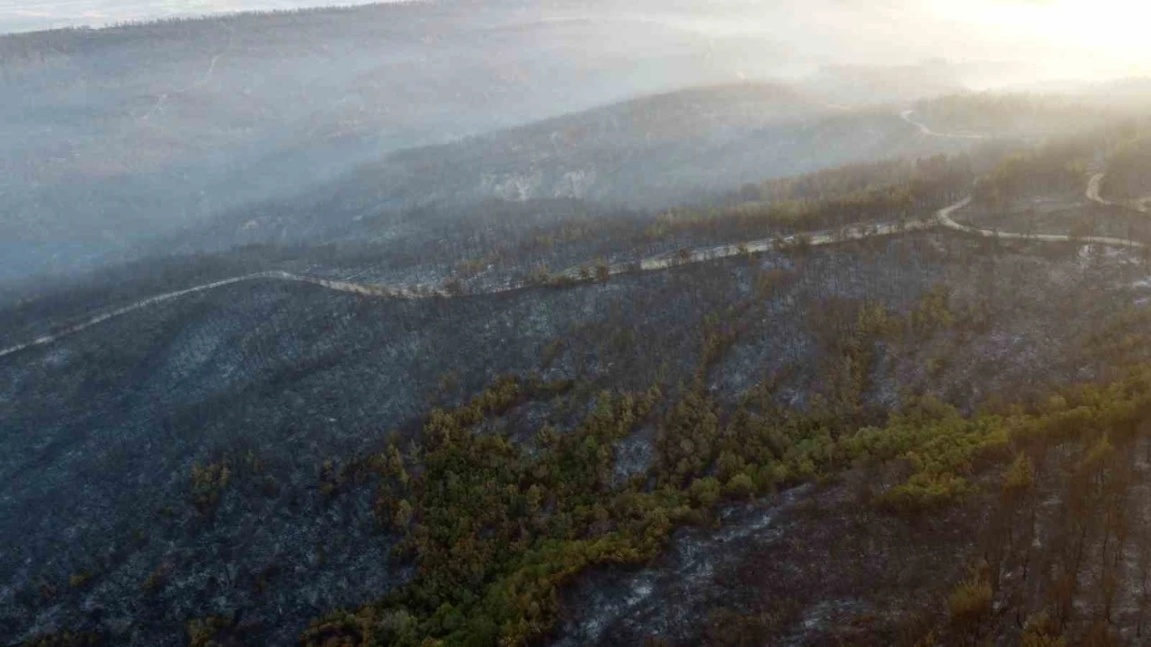 Yangının 3’üncü gününde yanan ormanlık alanlar dronla görüntülendi.