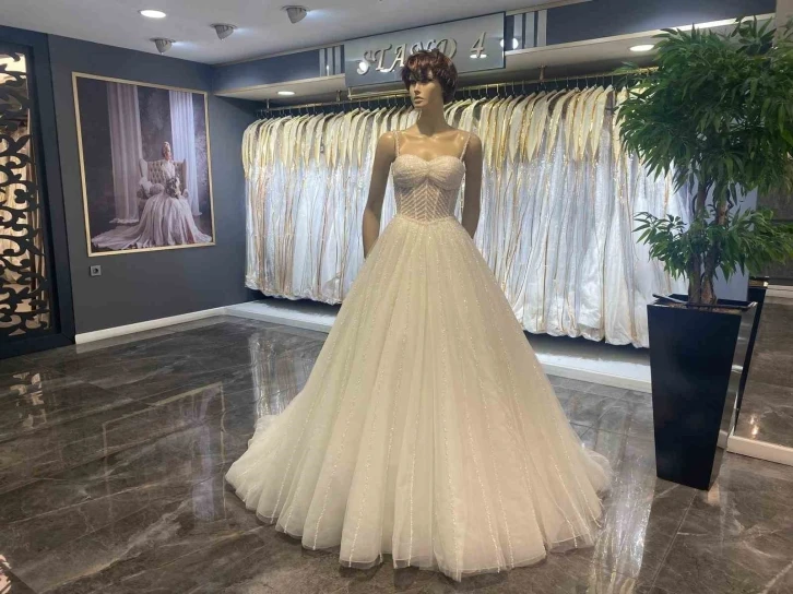 Kayseri’de yaz aylarının gelmesiyle beraber düğün alışverişi telaşı başlarken; gelinlikte en çok taşlı ve kabarık modeller tercih ediliyor.