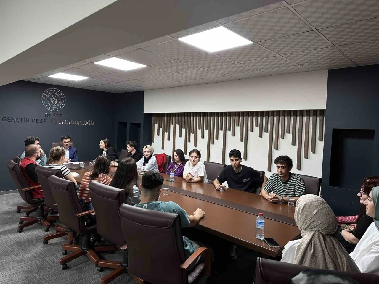 Düzce’ye çeşitli şehirlerden gelerek okumaya gelen Düzce Üniversitesi öğrencileri, gelecek kariyerleri ile ilgili planlamalarına da önem veriyor. Bu çerçevede hemşirelik bölümü öğrencilerinin kurduğu Genç Hemşireler Topluluğu çeşitli projeler üretti. Bu projeleri hayata geçirmek isteyen öğrenciler hazırladıkları projeleri Düzce Gençlik ve Spor İl Müdürü İsa Yazıcı’ya aktardı. Projelerini hayata geçirmek istediklerini dile getiren öğrencilere İl Müdürü Yazıcı tam destek verme sözü vererek, projeler hakkında yol haritası çizildi.