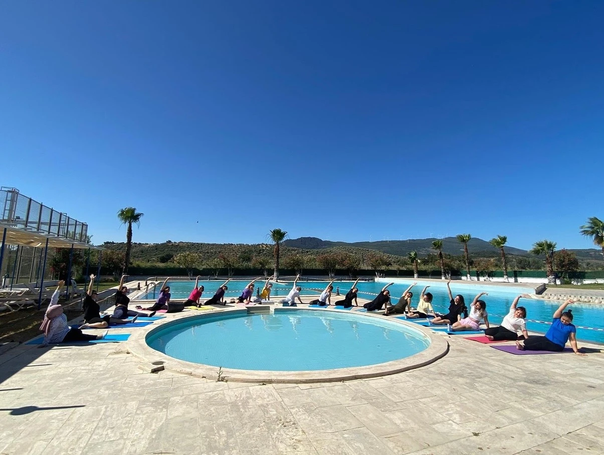 Germencik Belediyesi tarafından düzenlenen yoga, pilates ve zumba kurslarına yoğun ilgi gösteren kadınlar, uzman eğitmenler eşliğinde havuz başında spor yapma imkanı buluyor. Germencik Belediyesi, kadınlara yönelik düzenlediği zumba, pilates ve yoga kurslarıyla hem sağlıklı yaşamı teşvik etmeye hem de sosyal dayanışmayı güçlendirmeye devam ediyor. Belediye Başkanı Burak Zencirci öncülüğünde devam eden kurslara Germencikli kadınların ilgisi yoğun olurken, kurslar yaz aylarının keyfini artırmak için bu kez havuz başında gerçekleştirildi. Kadınlar, uzman eğitmenler eşliğinde spor yapma fırsatı bulurken, etkinlik renkli görüntülere de sahne oldu. Sporun sadece sağlık değil, aynı zamanda sosyal bir buluşma noktası olduğunu vurgulayan Germencik Belediye Başkanı Burak Zencirci; "Uzman eğitmenlerimiz eşliğinde kadınlarımıza yönelik zumba, pilates ve yoga kurslarımız devam ediyor. Vatandaşlarımıza hem sosyal bir ortam hem de sağlıklı bir yaşam sunmak için çalışmalarımızı sürdürüyoruz" dedi.