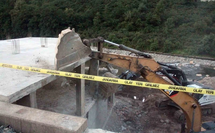 Giresun’un Görele ilçesinde dere yatağına yapılan ev inşaatı Çevre Şehircilik ve İklim Değişikliği Giresun İl Müdürlüğü tarafından yıkıldı.