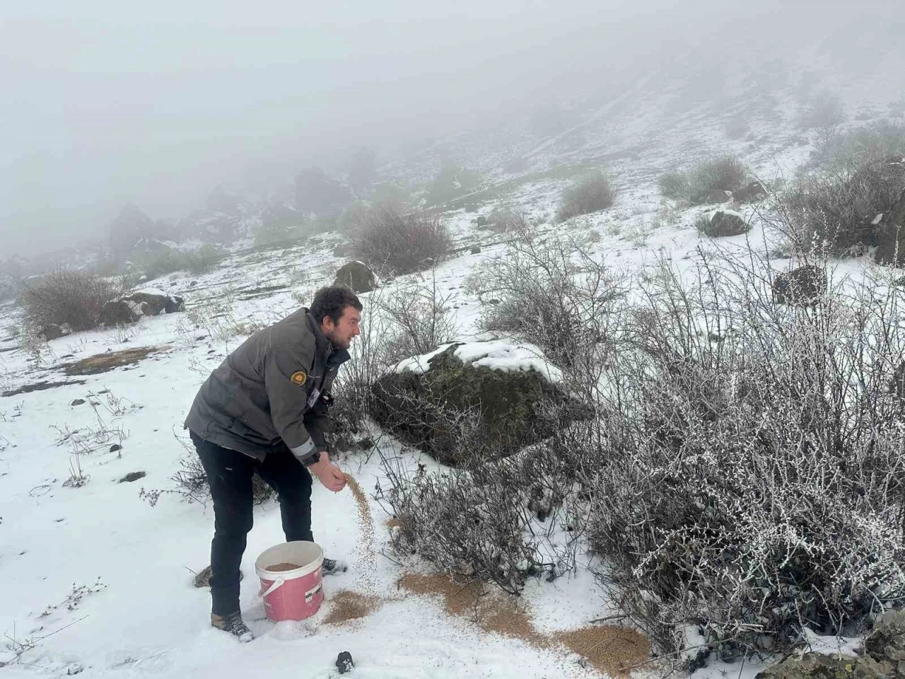 Doğa Koruma ve Milli Parklar Giresun Şube Müdürlüğü, bölgede etkili olan yoğun kar yağışı nedeniyle yaban hayvanları için doğaya yem bıraktı.