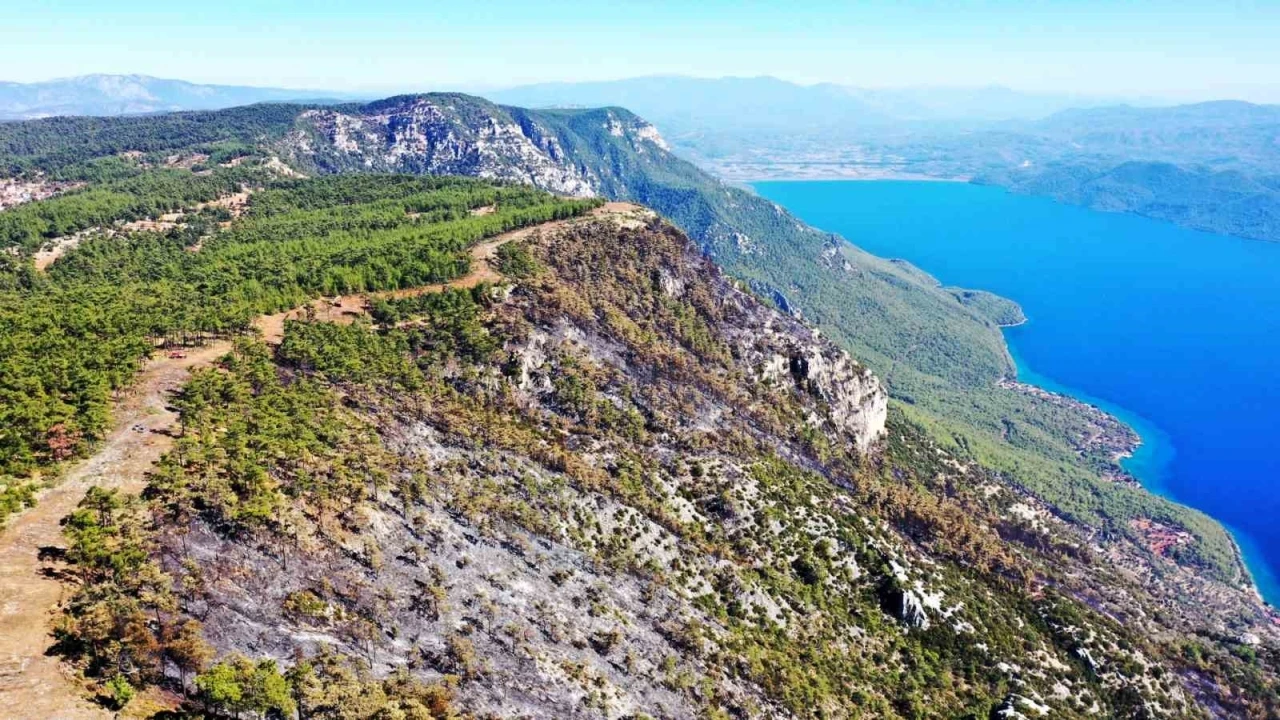 Mavi yolculuğun rotasında yer alan dünyaca ünlü Gökova Körfezi’nin kuzeyinde Turnalı bölgesinde sarp kayalık yamaçlarda 18 Ekim Cuma günü saat 03.30’da çıkan orman yangını, ekiplerin 3 gün süren yoğun çalışmaları sonucu sabah saatlerinde kontrol altına alındı. Bölgede soğutma çalışmaları devam ederken, ekiplerin yangını söndürmek ve yer ekiplerinin ulaşımını sağlamak için gece gündüz çalışarak dik yamaçta açtıkları 6 bin 479 metre uzunluğundaki hat dron ile görüntülendi. Hat boyunca bekleyen arazöz ekipleri, yanık saha içerisindeki tütmelere su atan yangın söndürme helikopteri, şeritteki çalışmalarına devam eden iş makinaları ve yangının yeşilden siyaha döndürdüğü Turnalı sırtları dron kamerasına yansıdı. Menteşe’nin kırsal Kıran ve Sarnıç mahallerinin sınırındaki yangın şeridi sayesinde alevlerin önü kesilerek, yangının Sarnıç Mahallesi’ne ulaşması da engellenmiş oldu.