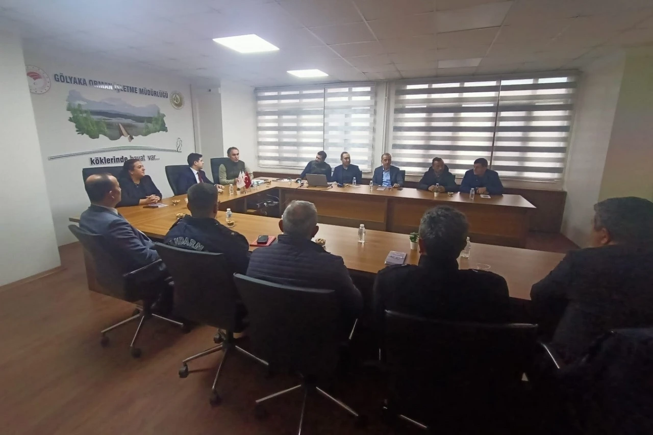 Gölyaka ilçesi Orman İşletme Müdürlüğü ev sahipliğinde, 4915 sayılı Kara Avcılığı Kanunu’nun 3. maddesi gereği, 2025 yılı ilçe av komisyonu toplantısı düzenlendi. Toplantıya, Kaymakam Mehmet Bircan’ın başkanlığında ilçe av komisyonu üyeleri katıldı. Toplantıda, Gölyaka ilçesi sınırları içindeki av hayvanlarının korunması ve avlanma düzenlemeleri görüşüldü. Av dönemi için izin verilen hayvan türleri, avlanma süreleri ve limitleri ile yasaklanan avlanma alanları da konuşuldu. Ayrıca, avlanma sırasında dikkat edilmesi gereken hususlar, yasaklanan av araç ve gereçler ile usulsüz avlanma ile ilgili yapılacak idari ve cezai işlemler detaylı bir şekilde ele alındı.