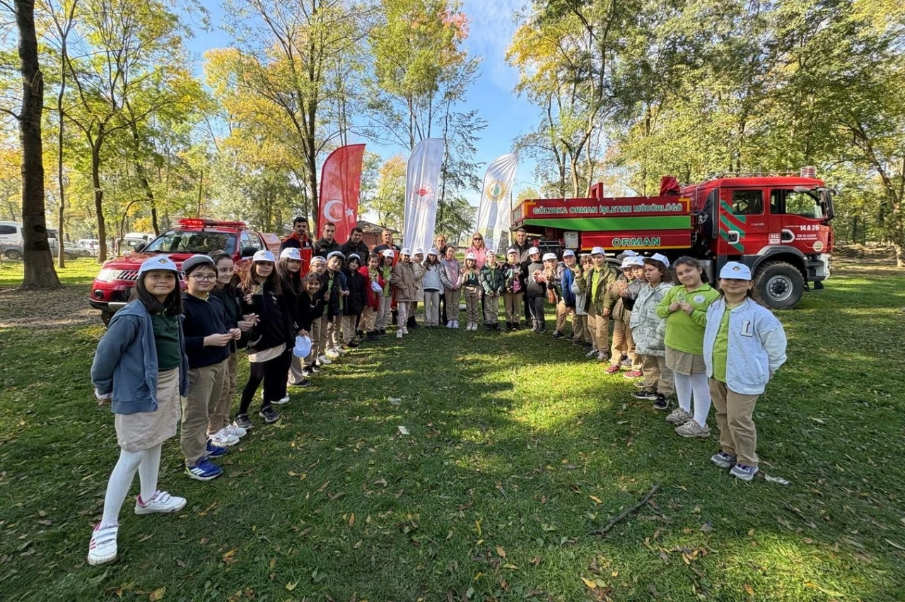 Orman yangınlarına karşı Yeşil Vatan’ı korumak amacıyla başlatılan proje kapsamında düzenlenen programda orman işletme personeli öğretmenleri ve öğrenciler Gölyaka Kültür Parkta buluştu.