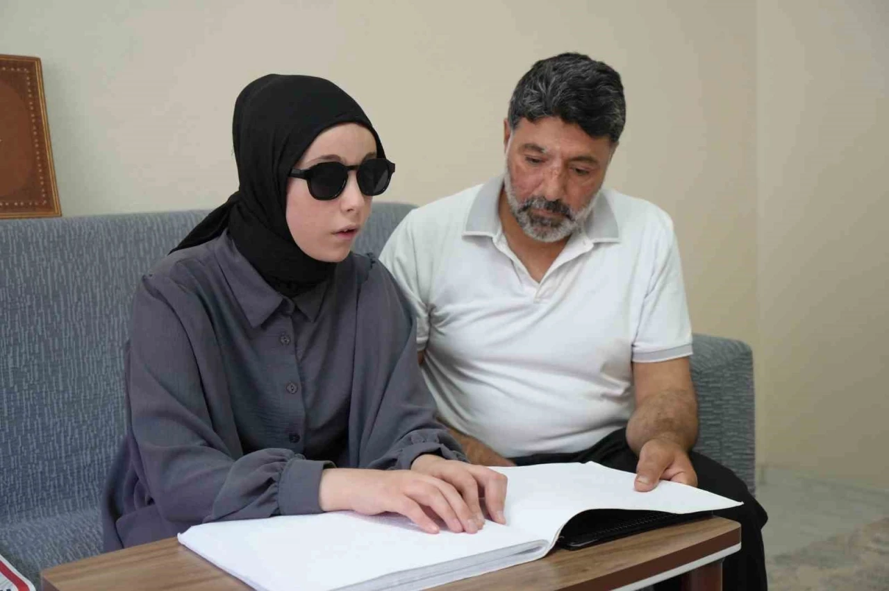 GAP Görme Engelliler Ortaokulu’ndan bu yıl mezun olacak olan kızı Esma Nur’un dini eğitimiyle de yakından ilgilenen baba Abdurrahman Esen, gününün büyük bölümünü kızına ayırıyor.