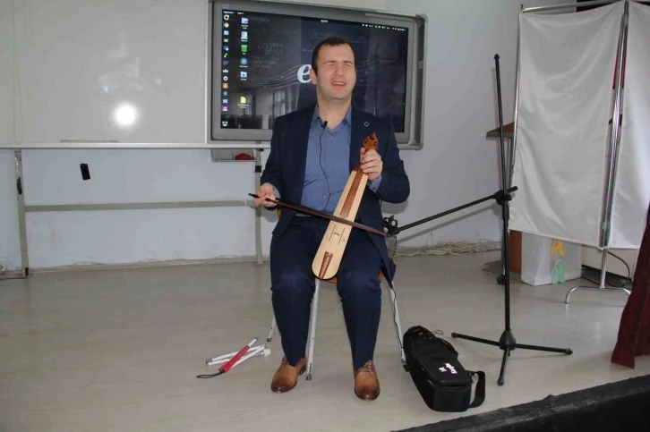Müzik Öğretmeni Mert Karagüzel mini konser öncesi yaptığı konuşmada 10-16 Mayıs tarihleri arasından kutlanan Engelliler Haftası’yla ilgili, "Ben 2 yaşında darbuka çalarak müzik yaşamıma merhaba dedim. Daha sonra çeşitli müzik aletleri ile müzik hayatıma devam ettim. Son zamanlarda ise kemence hayatımın değişmez enstrümanı oldu. Bafra Milli İrade İmam Hatip Ortaokulunda 5 yıldır müzik öğretmeni olarak görev yapıyorum. Öğrencilerim tarafından çok seviliyorum. Ben de onları seviyorum. Onun için benim görme engelli olmam beni engellemiyor. Müziği ve öğrencilerimi çok seviyorum. Ayrıca 10-16 Mayıs tarihleri Engelliler Haftası engelli kardeşlerimizin sorunlarının gündeme getirilmesi, bunlara çözüm üretilmesi ve tüm halkımızın bu konuda duyarlılığının artırılması bakımından büyük önem taşımaktadır. Her toplumunda olduğu gibi ülkemizde de nüfusun önemli bir kısmını oluşturan engelli vatandaşlarımızın yaşam becerilerini geliştirerek, kendi kendilerine yetebilmeleri, yetenekleri ve yeterlilikleri doğrultusunda eğitim imkanlarından yararlanabilmeleri, kendilerine uygun işlerde istihdam edilebilmeleri, diğer bireylerle iyi ilişkiler içinde olabilmeleri çok önemlidir. Ben de bunlara örnek teşkil ettiğime inanıyorum" dedi.