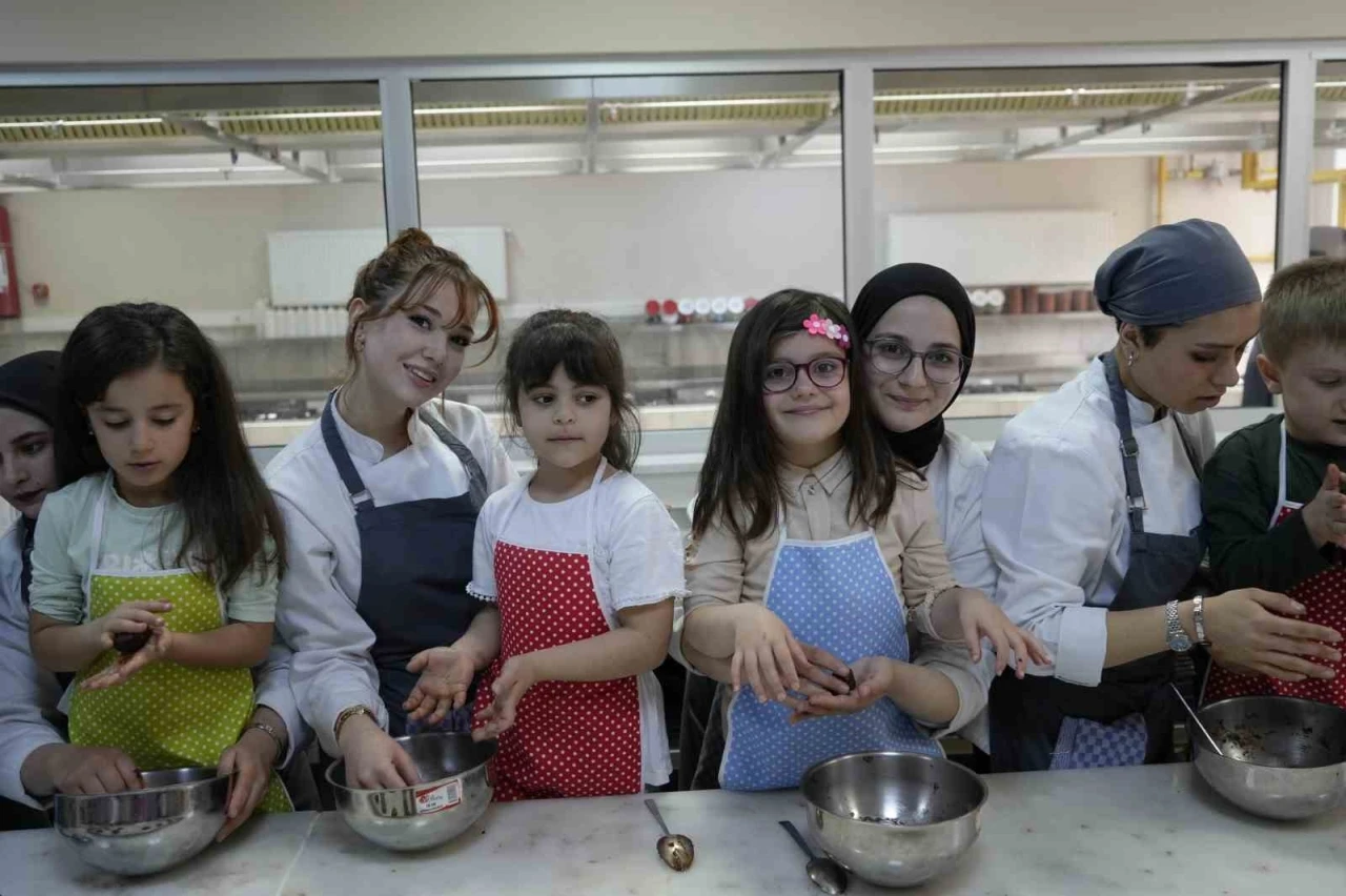 Uygulama mutfağına girerek önlüklerini giyen minik öğrenciler fakültenin akademisyenleri ve öğrencilerinin de yardımıyla kendi kek ve kurabiyelerini yaptı. Minik aşçıların hazırladıkları kek ve kurabiyeler daha sonra pişmesi için fırına verildi. Etkinliğin sonunda minikler kendi yaptıkları kek ve kurabiyeleri afiyetle yediler.
