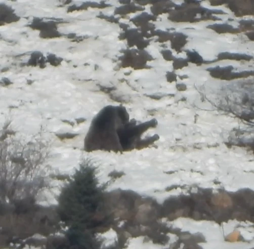 Gümüşhane’de kış ayının gelmesiyle birlikte kış uykusuna yatamayan ayılar kilometrelerce öteden Doğa Koruma ve Milli Parklar (DKMP) Gümüşhane Şube Müdürlüğü ekiplerinin kameralarına yakalandı. Pirahmet köyü ve Olukdere köyü arasında bulunan dağlık arazide birbirleriyle oyun oynayan ayıların keyifli anları izleyenleri gülümsetti.