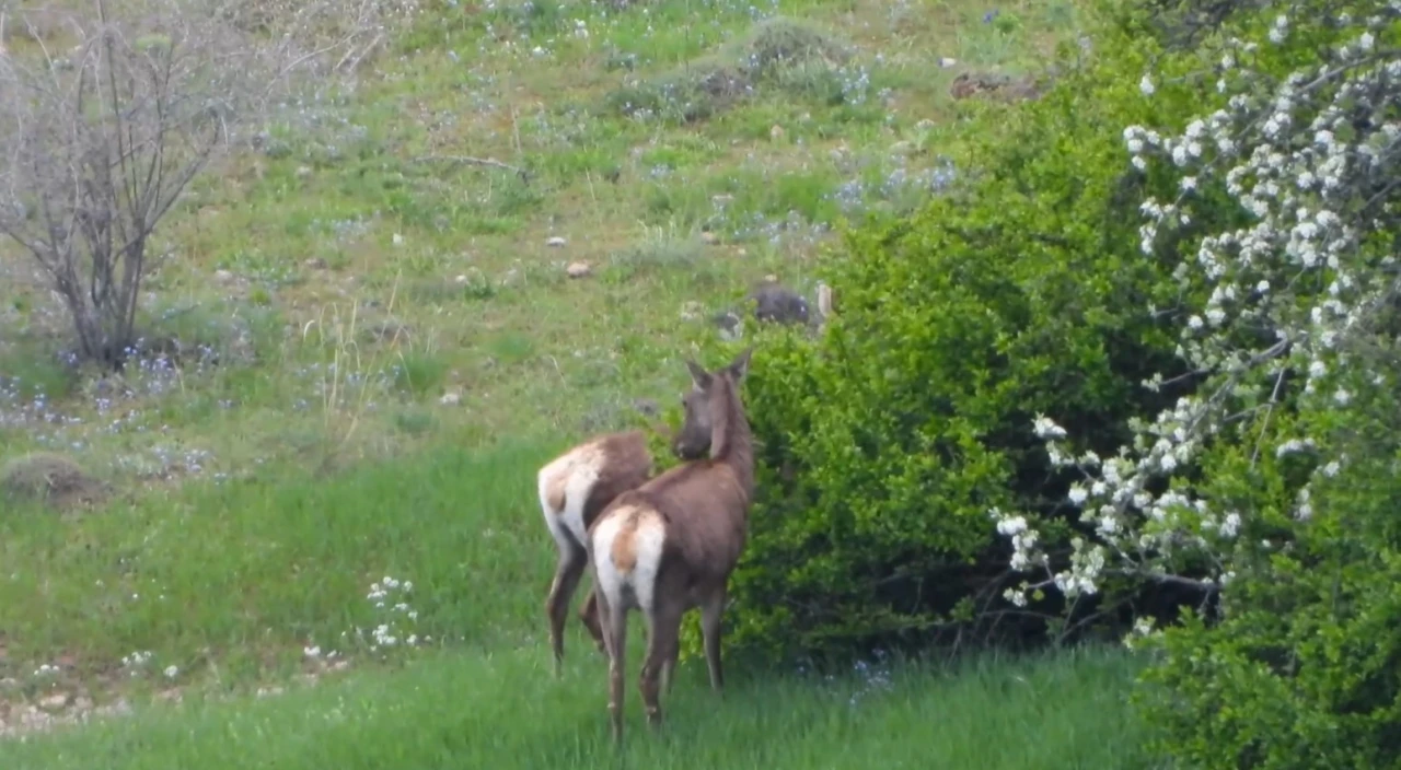 DKMP Genel Müdürü Kadir Çokçetin’in sosyal medya hesabından, "Gümüşhane’nin yaban hayatında kızıl geyiklerin zaferi" notuyla paylaştığı görüntülerde, Türkiye’nin en büyük geyik türlerinden biri olan kızıl geyiklerin beslendiği ve doğada özgürce dolaştığı görüldü. Çokçetin paylaşımında, orman yangınlarına karşı dikkatli olunması gerektiğini hatırlatırken, yaban hayatının ve doğanın korunmasının önemine de vurgu yaptı.