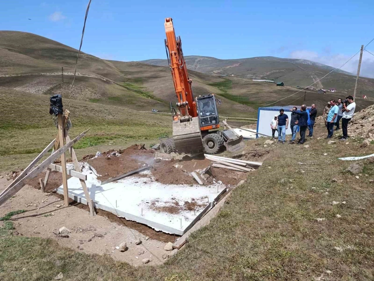 Gümüşhane’nin Merkez ilçesine bağlı Taşköprü Yaylası’nda kaçak yapıların yıkımına başlandı.
