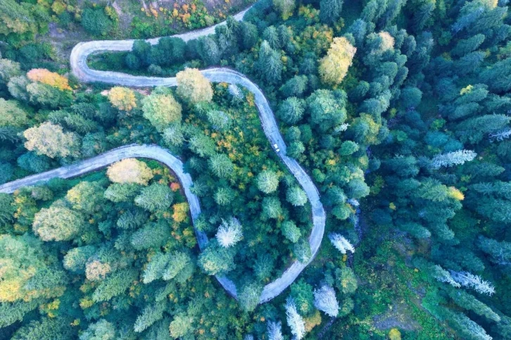 Gümüşhane’nin Kürtün ilçesi sınırlarında bulunan ve Türkiye’nin önemli karışık ormanlarından birisi olmasının yanında içerisindeki yüzlerce yıllık ağaçların göğe uzandığı canlı ağaç müzesi ’Örümcek Ormanları’ sonbaharla birlikte renk cümbüşüne dönüştü.
