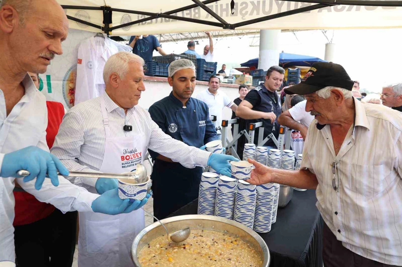 Bursa Büyükşehir Belediyesi, Muharrem ayı dolayısıyla kentin farklı noktalarında vatandaşlara aşure ikramında bulunuyor. Gürsu ilçesinde bulunan Kapalı Pazar Yeri’nde Bursalılara aşure ikram eden Başkan Mustafa Bozbey, vatandaşların Muharrem ayını tebrik etti.
