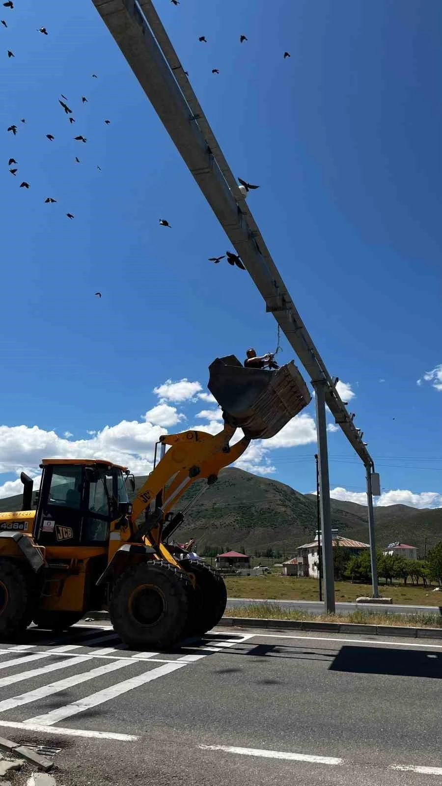 Karlıova ilçe girişinde bulunan güvenlik kamerası direğinde ipe takılan karganın olduğunu gören vatandaşlar, durumu polis ve belediye ekiplerine bildirdi. Olay yerine gelen trafik polisleri yol güvenliğini sağlarken belediye ekipleri de kepçe yardımı ile hayvanın yanına ulaştı. Ekiplerin çalışması sonucu hayvan takıldığı ipten kurtarılarak doğal yaşam alanına bırakıldı. Vatandaşlar, çalışmada emeği geçenlere teşekkür etti.