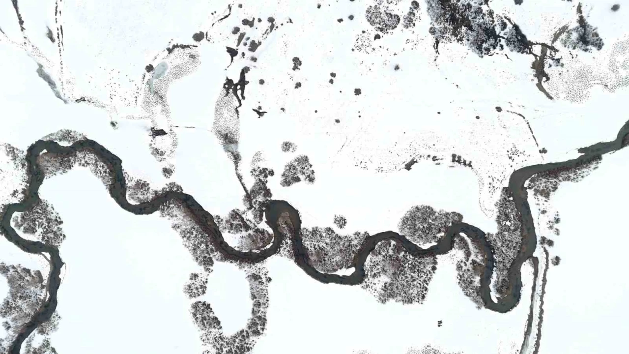Tatvan ilçesinde bulunan Güzeldere Menderesleri, doğa tutkunlarının ilgisini çekmeye devam ediyor. Kış aylarında karla kaplanan, bahar ve yaz aylarında ise yemyeşil bir örtüyle bezenen bu doğal güzellik, kendine hayran bırakıyor. Tatvan’a bağlı Güzeldere köyü yakınlarında yer alan ve kıvrımlı yapısıyla göz kamaştıran menderesler, özellikle havadan görüntülendiğinde kartpostallık manzaralar sunuyor. Bitlis ve çevre illerden çok sayıda fotoğrafçı, doğasever ve gezgin, bu eşsiz doğa harikasını görmek için bölgeye akın ediyor. Bembeyaz kar örtüsünün arasından süzülen menderes kıvrımlarının oluşturduğu kış güzelliği havadan dron ile görüntülendi. Bölgeye gelen doğaseverler ve fotoğrafçılar, bölgenin doğal güzelliklerini fotoğrafladı.