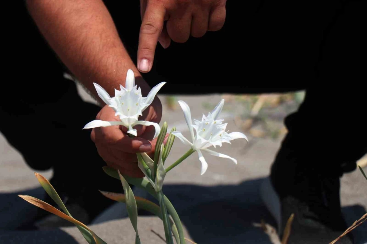 Ergün Zehir ise, "Kum zambakları sahilde açmaya başladı. Belediye ekipleri plajda uyarı levhalarıyla bilgilendirme yapıyor. En büyük ricamız, kum zemine ATV gibi araçlarla girilmemesi. Zambaklar Temmuz başında açıyor, Ağustos sonuna kadar görsel bir şölen sunuyor. Özellikle bu aylarda sahile gelen vatandaşların çok dikkatli olmasını istiyoruz" diye konuştu.