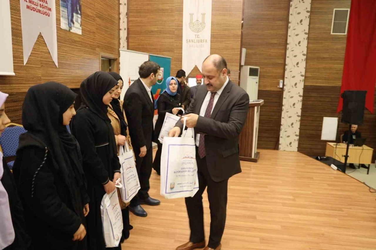 Şanlıurfa Büyükşehir Belediyesi Sosyal Hizmetler Dairesi Başkanlığı ve Şanlıurfa İl Müftülüğünün işbirliğiyle düzenlenen tablet dağıtım töreni, Milli Eğitim Konferans Salonunda gerçekleştirildi. Programa, Şanlıurfa Büyükşehir Belediye Başkanı Mehmet Kasım Gülpınar, Karaköprü Belediye Başkan Vekili Bakır Kama, Şanlıurfa İl Müftüsü Ramazan Tolan, bazı daire başkanları, hafız öğrenciler ve aileleri ile hocalar katıldı.