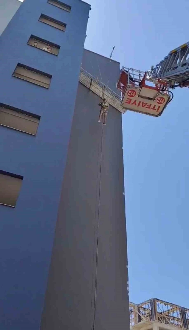 Alınan bilgiye göre, Mezitli ilçesine bağlı Davultepe Mahallesi İstiklal Mahallesi’nde 7 katlı binada çalışan Ömer Kapar’ın bulunduğu iskelenin halatı henüz belirlenemeyen bir nedenle koptu. İskele yan dönünce üzerinde bulunan inşaat işçisi, güvenlik için bağladığı ipte asılı kaldı. Korku dolu anların yaşandığı kazanın ardından itfaiye ekiplerine haber verildi. İnşaat işçisi Ömer Kapar, asılı kaldığı iskeleden Mersin Büyükşehir Belediyesi itfaiye ekiplerince merdivenli araç yardımı ile kurtarıldı.