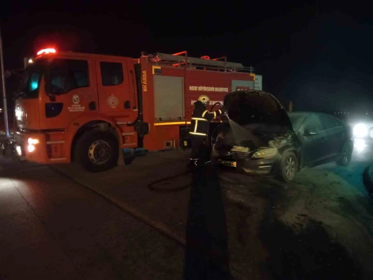 Hatay’da seyir halindeyken alevlere teslim olan otomobilde hasar oluştu.
