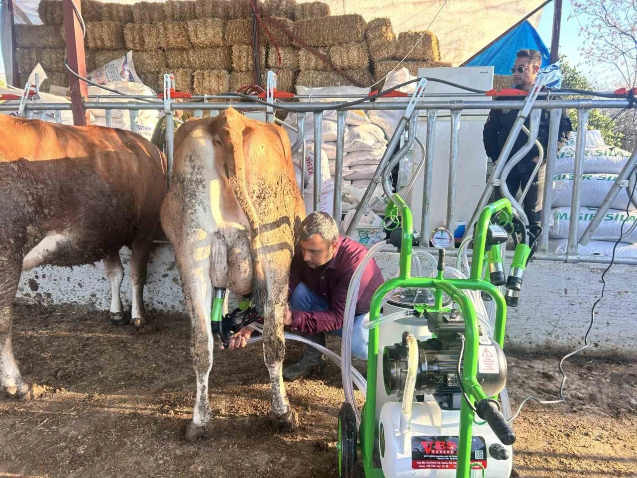 Hatay’da besicilere yüzde 95 hibe destekli süt sağım makinesi ve hijyen paketi dağıtıldı.