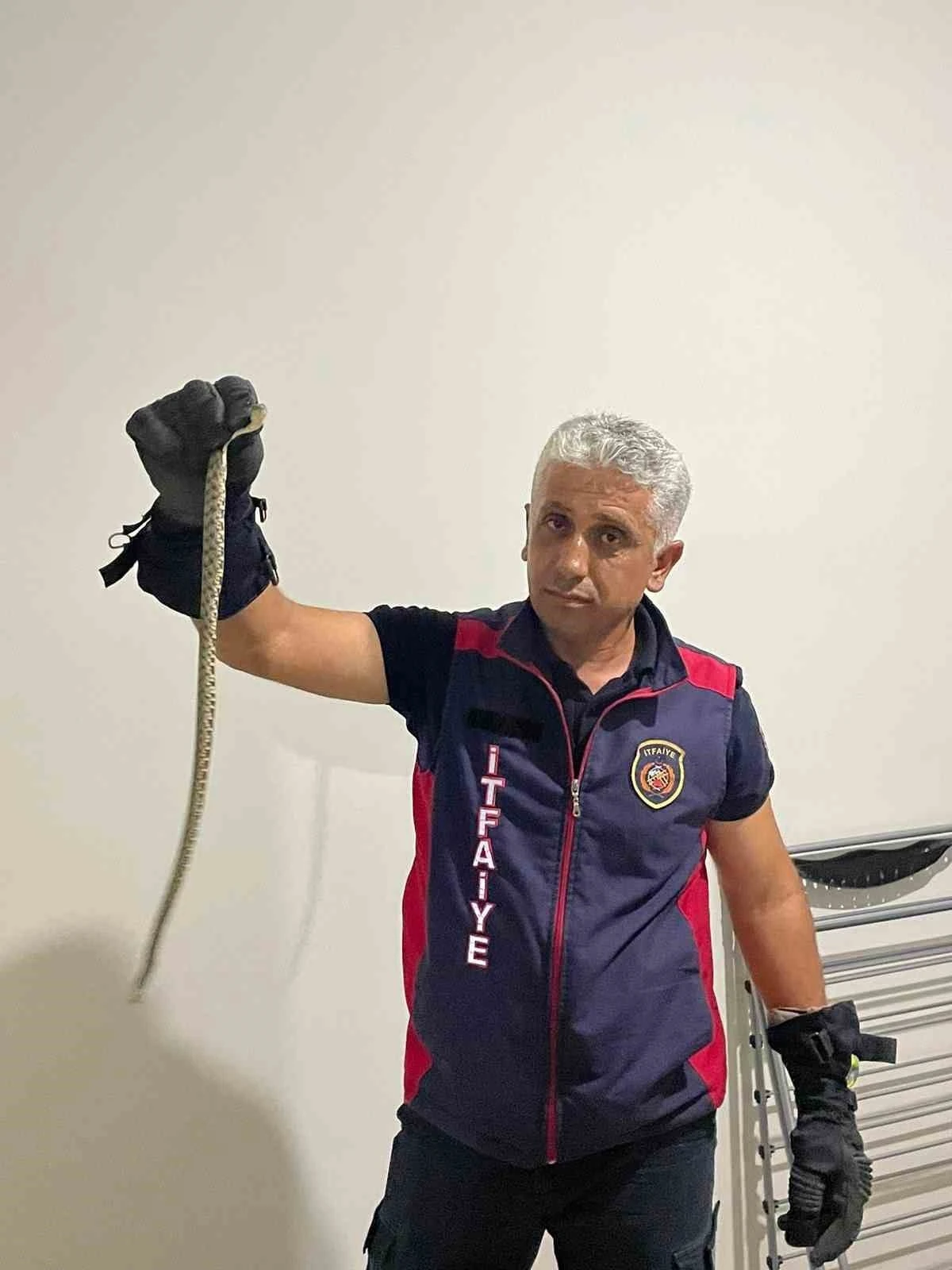 Hatay’da 2 farklı eve giren yılanlar itfaiye ekipleri tarafından yakalandı.