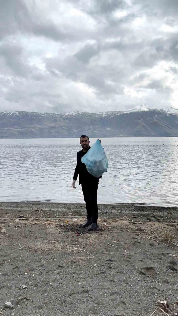 Elazığ’da bir vatandaş, tatilcilerin yaz aylarında sıkça uğradığı Hazar Gölü çevresindeki çöpleri elleriyle tek tek topladı.