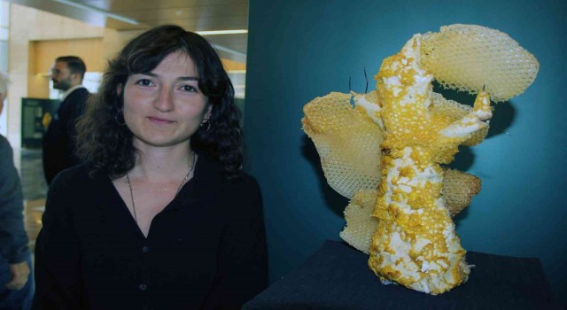 Dedesi ve babasının da geçimini arıcılıktan sağladığını belirten Araştırma Görevlisi Beyza Durhan, “Eserlerden en önemlilerinden birisi Yılanlı Tanrıça. Bu figürü doğal malzeme ile sarıp arı kovanına yerleştirdim. Altında böyle detayların olmamasına rağmen arılar kendileri bambaşka bir eser üretmiş oldular. Arılar ile işbirliği içinde böyle bir eser ortaya çıktı. Eserin ortaya çıkması süresi çok uzun değil. Çünkü doğru mevsimde doğru floralarla çok kısa sürede kabartabiliyor. Burada görülen bütün yüzeyler arılar tarafından örüldü. Sadece iç iskeleti bana ait” dedi.
