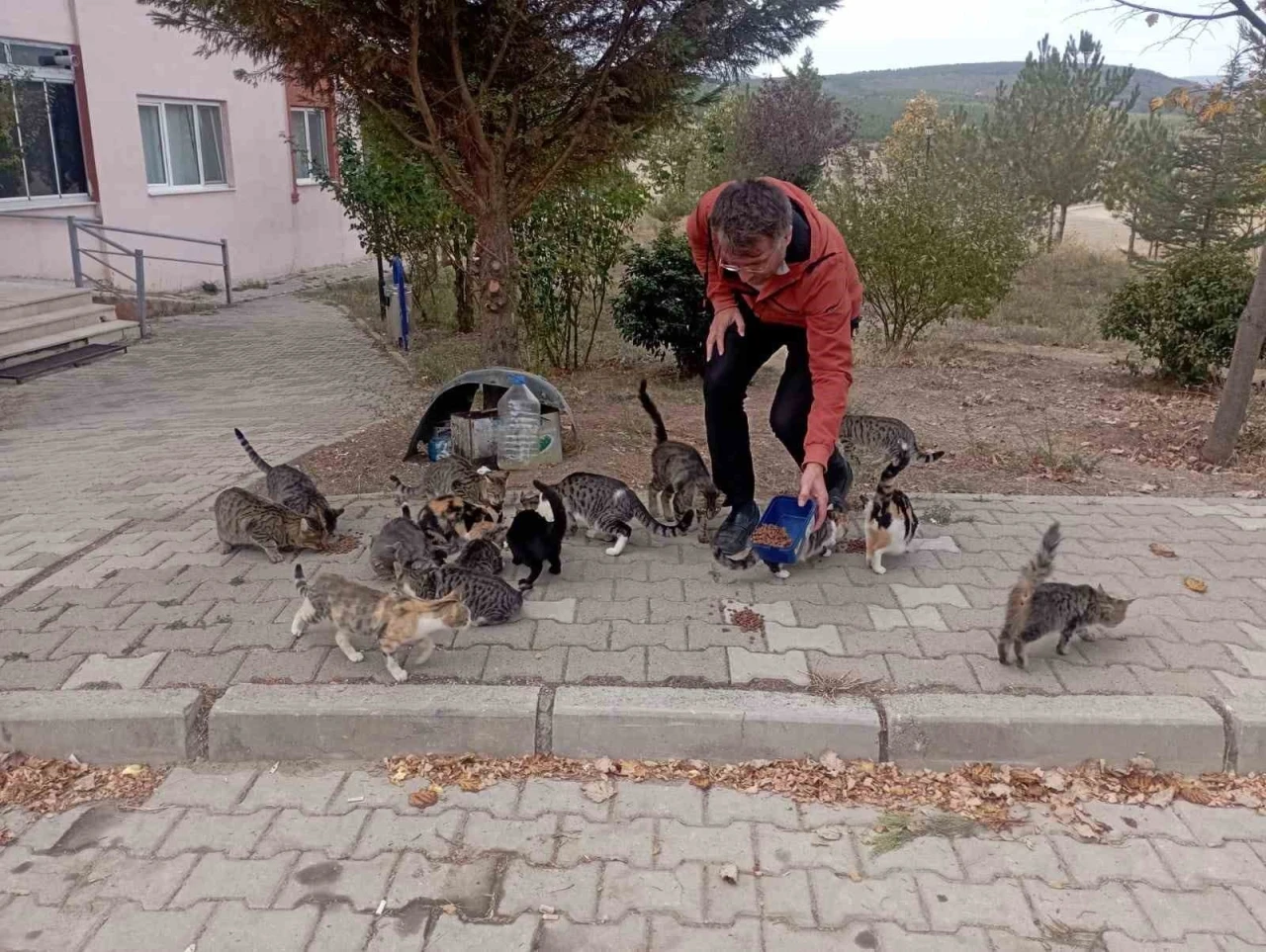 İlçenin Yenidoğan Mahallesi deprem TOKİ’lerinde oturan kırtasiyeci Halil Koca, pandemiden bu yana evinde, evinin önünde ve iş yerinin önünde 30’dan fazla sokak kedisini besliyor.