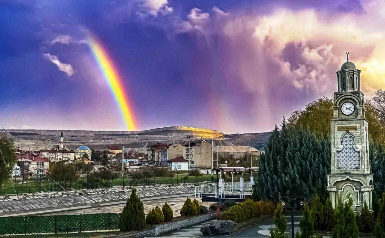 Yağmur sonrası ortaya çıkan renkli manzara, vatandaşların büyük ilgisini çekti. Saat Kulesi ile gökkuşağının buluştuğu o anlar, görenleri hayran bıraktı. Bu eşsiz doğa olayını cep telefonuyla görüntüleyen Veteriner Hekim Ali Var, sosyal medyada paylaştı. Paylaşımlar kısa sürede büyük beğeni topladı.