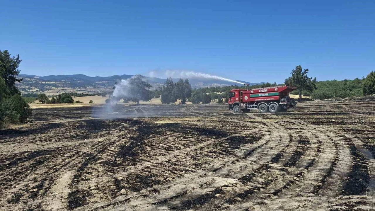 Kütahya’nın Hisarcık ilçesinde biçerdöverden çıkan kıvılcımın otluk alanı tutuşturması sonucu çıkan yangında 30 dekarlık boş ve hububat ekili alan zarar gördü.