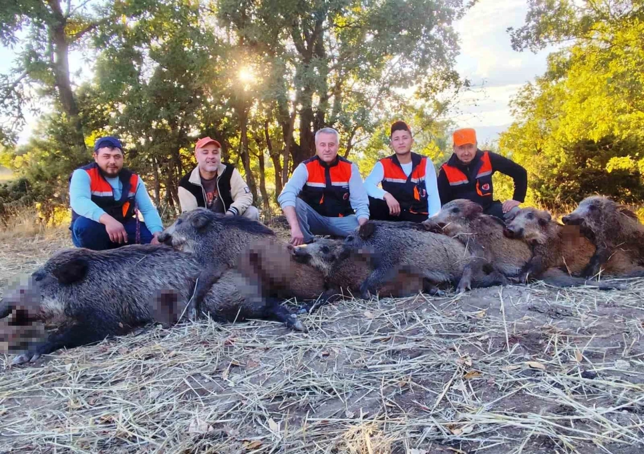 Kütahya’nın Hisarcık ilçesindeki avcılar 6 saatte 7 yaban domuz vurdu.