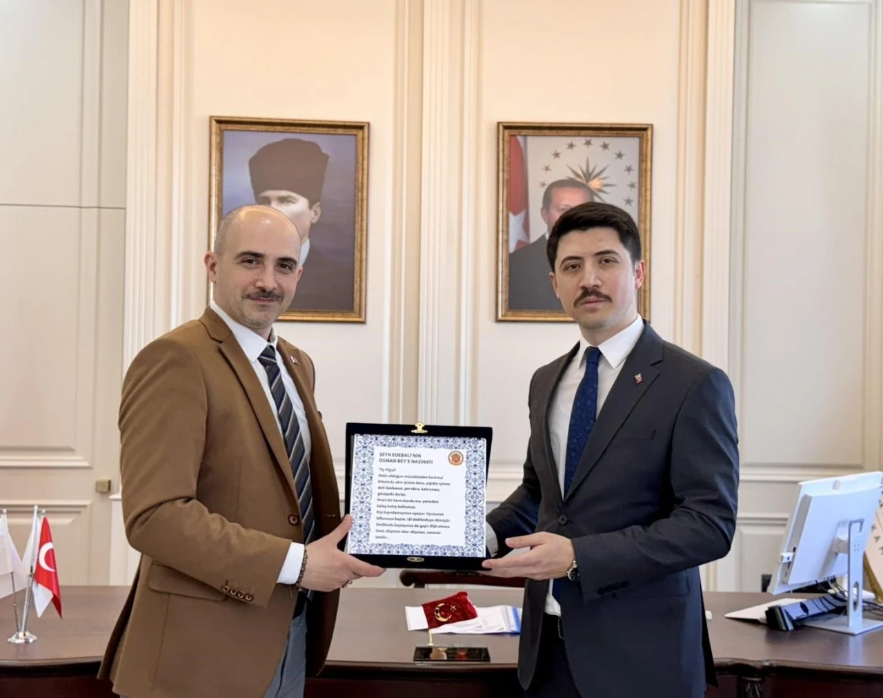 Bilecik İl Kültür ve Turizm Müdürü Serkan Bircan, Pazaryeri Kaymakamı Ahmed Tayyib Kahraman’a yeni Hükümet Konağında hayırlı olsun ziyaretinde bulundu.