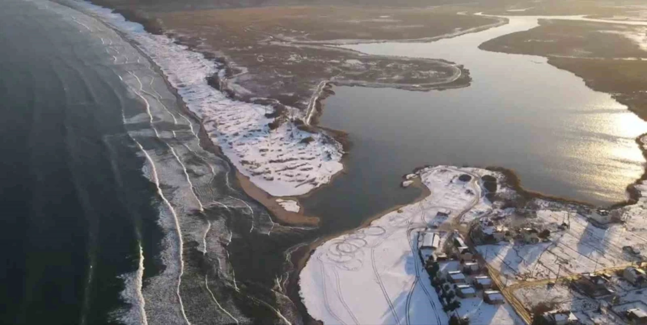 Kar yağışı sonrası özellikle Demirköy ilçesine bağlı İğneada beldesi sahil şeridinde oluşan eşsiz manzaralar, dron ile havadan görüntülendi. Beyaz örtüyle kaplanan sahil, dalgaların kıyıya vurmasıyla birlikte görsel şölen oluşturdu. Karla kaplı kumsal, ormanlık alanlar ve Karadeniz’in mavisi, havadan çekilen görüntülerde net bir şekilde gözler önüne serildi.
