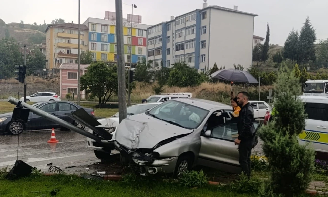 Kaza, Sanayi Kavşağı’nda meydana geldi. E.A. idaresindeki 14 AAE 030 plakalı otomobil, R.K. idaresindeki 78 AR 972 plakalı otomobil ile çarpıştı. Çarpışmanın etkisiyle her iki araç orta refüje savrularak aydınlatma direğine çarptı.