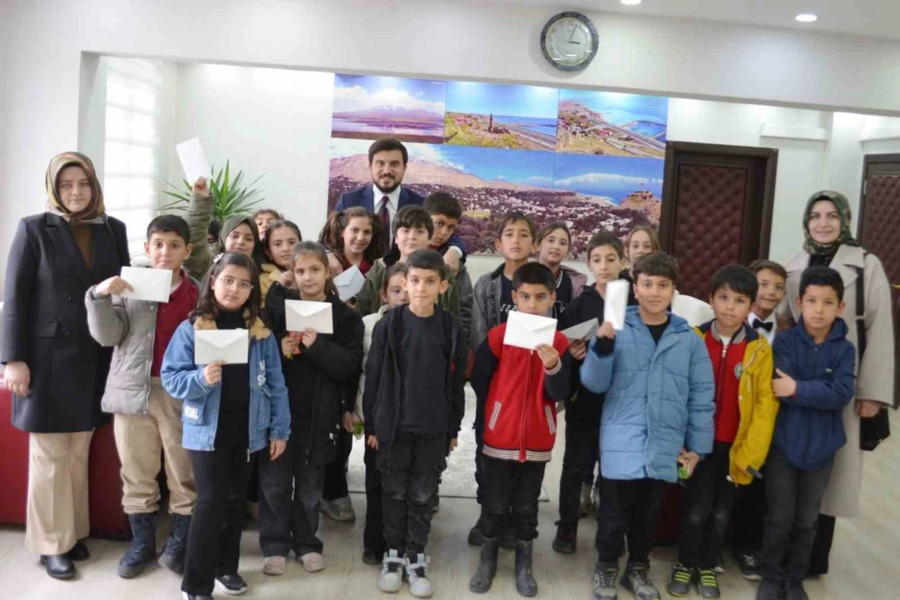 Adilcevaz Belediye Başkanı Abdullah Akbaba’yı makamında ziyaret eden Şehit Yusuf Sayan İlkokulu 3. sınıf öğrencileri Başkan Akbaba’dan da mülki idare amirlerinin görev ve sorumlulukları hakkında bilgiler alarak mektup içerisinde talep ve isteklerini sundular. Başkan Akbaba da öğrencilerin yazdığı mektupları tek tek okuyarak talep ve isteklerini yerine getireceklerinin sözünü verdi.