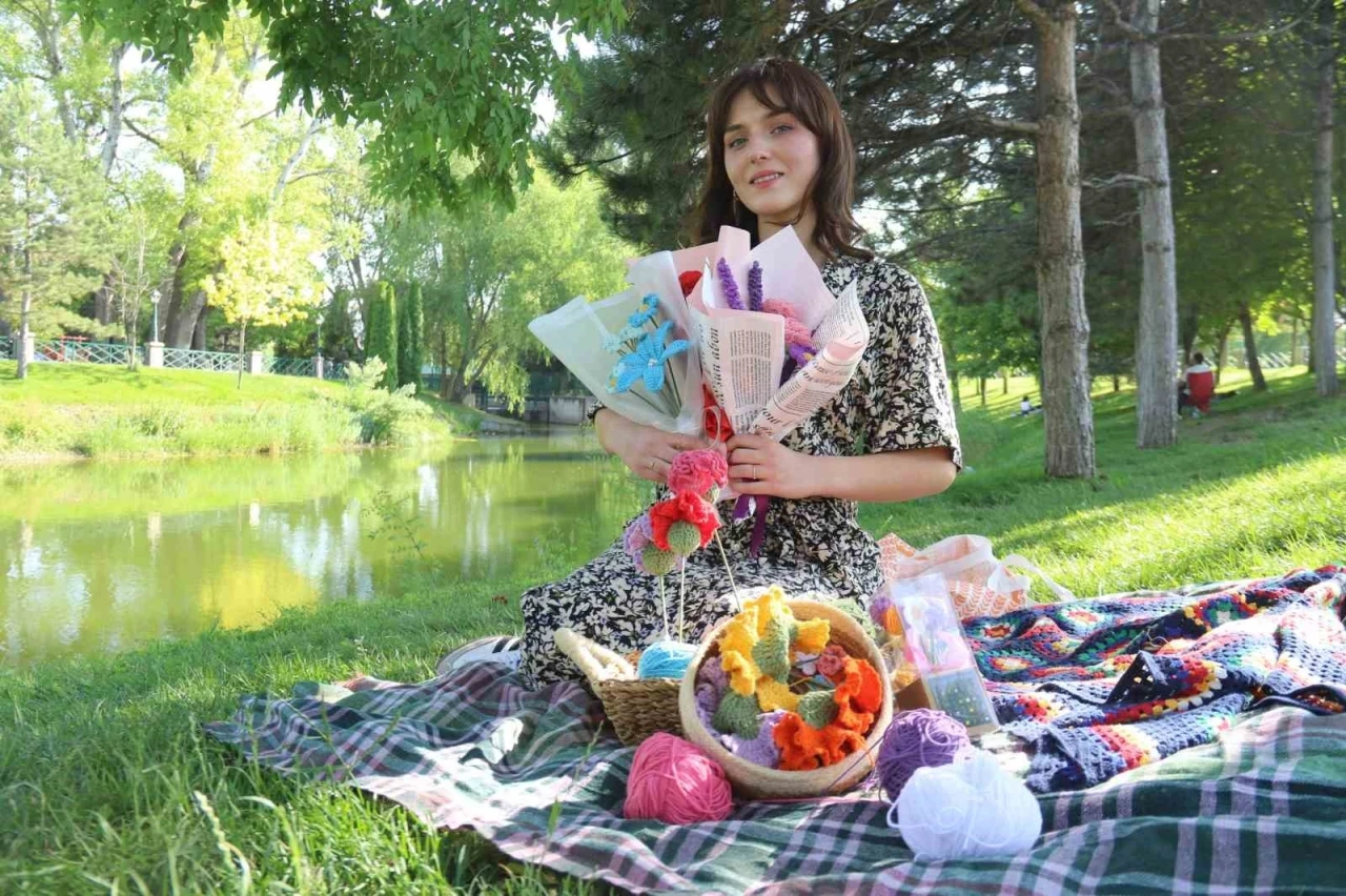 Eskişehir’de yaşayan üniversite öğrencisi Yeliz Elmas, boş zamanlarında ördüğü çiçekler gerçeğini aratmıyor. Genellikle karanfiller, zambak, gül, lavanta gibi çiçekleri taklit eden Elmas, ilerde bu yeteneğini ticarete dökmek istiyor.