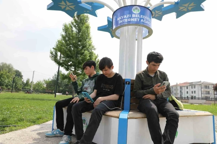 Gelişen ve büyüyen Akyazı’da teknolojik gelişmelerden de uzak durmadıklarını ifade eden Akyazı Belediye Başkanı Bilal Soykan, “İnternet artık çağımızın olmazsa olmazlarından bir tanesi haline geldi. Biz de vatandaşlarımızı bu hizmetten ücretsiz olarak faydalandırabilmek için böyle bir projeyi hayata geçirdik. Özellikle gençlerimizin yoğun olarak bulundukları Recep Tayyip Erdoğan Spor Kompleksi, Sosyal Gelişim Merkezi ve Çarşı İçinde bu internet ağaçlarımızı konuşlandırarak ücretsiz bir şekilde hizmet vermesini sağladık. Üzerinde bulunan solar güneş panelleri güneşten alınan enerjiyi akülerde depolanıyor. Oturma alanında bulunan 10 adet 5 w USB girişleri ile vatandaşlarımız telefon ve tablet teknoloji ürünlerini açık havada şarj edebiliyor. Aynı zamanda ücretsiz internet hizmetini de kullanabiliyorlar. Kurulduğu ilk günden beri özellikle genç kardeşlerimizin yoğun bir şekilde bu projemizden faydalanıyor olması bizi çok memnun etti. Akyazı için ve Akyazı’nın geleceği olan gençlerimiz için bu tür çalışmalara imza atmaya devam edeceğiz” dedi.