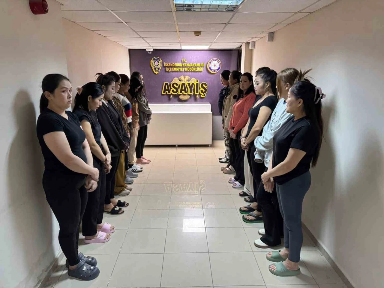 Hatay’ın İskenderun ilçesinde masaj ve spa salonlarına yönelik yapılan denetimlerde kaçak çalıştırıldığı tespit edilen 14 yabancı uyruklu kadın şahıs deport edilmek üzere gözlem altına alındı.