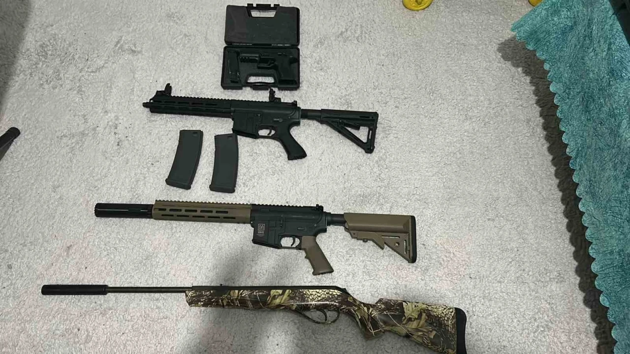 İstanbul merkezli 2 ilde gerçekleştirilen 110 şüphelinin yakalandığı terör örgütü DEAŞ’a yönelik yapılan operasyonlarda 2 adet uzun namlu dürbün, 4 adet havalı tüfek, 1 adet havalı tabanca, 9 adet fişek, 1 adet kılıç, pala, kasatura, bıçak ele geçirildi.