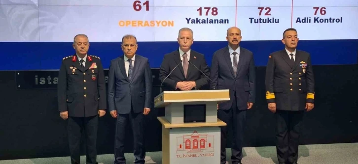 İstanbul Valisi Davut Gül, “Bu yılın ilk dört ayında terör örgütlerine karşı yapılan 576 operasyonda bin 256 şahıs yakalandı. 1’i bombalı, 1’i silahlı olmak üzere DEAŞ tarafından planlanan 2 terör eylemi engellenmiştir” dedi. Vali Gül, mali suçlarla ilgili yapılan operasyonlarda yaklaşık 51 milyon 660 bin TL kamu zararının engellendiğini açıkladı.