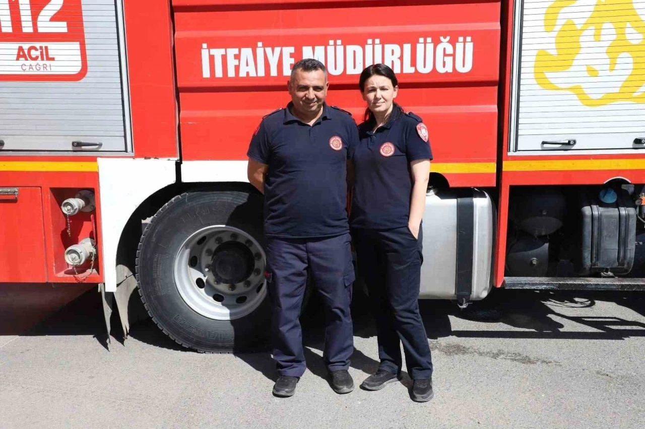 Çankırı’da itfaiyeci olarak görev yapan çift, yangın ve afetlerde can kurtarmak için birlikte mücadele ediyor.
