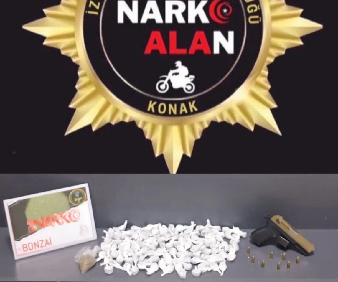 Konak İlçe Emniyet Müdürlüğü Narko Alan ve Devriye Ekipler Büro Amirliği ekipleri, suç ve suçlularla mücadele kapsamında 9 Ağustos günü ilçe genelinde çalışma yaptı. Operasyonda 4 adet ruhsatsız tabanca, 120 gram bonzai, 62 adet sentetik ecza hapı, uyuşturucu madde ticaretinden elde edildiği değerlendirilen 32 bin 765 lira ve 38 adet mermi ele geçirildi.