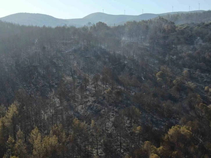 Öte yandan, yangının çıktığı nokta olarak değerlendirilen Pamucak’taki mevkii, dron ile havadan görüntülendi. Görüntülerde yanan alanlar, ormanlık alanda tutan dumanlar ve çalışma yürüten ekipler yer aldı.