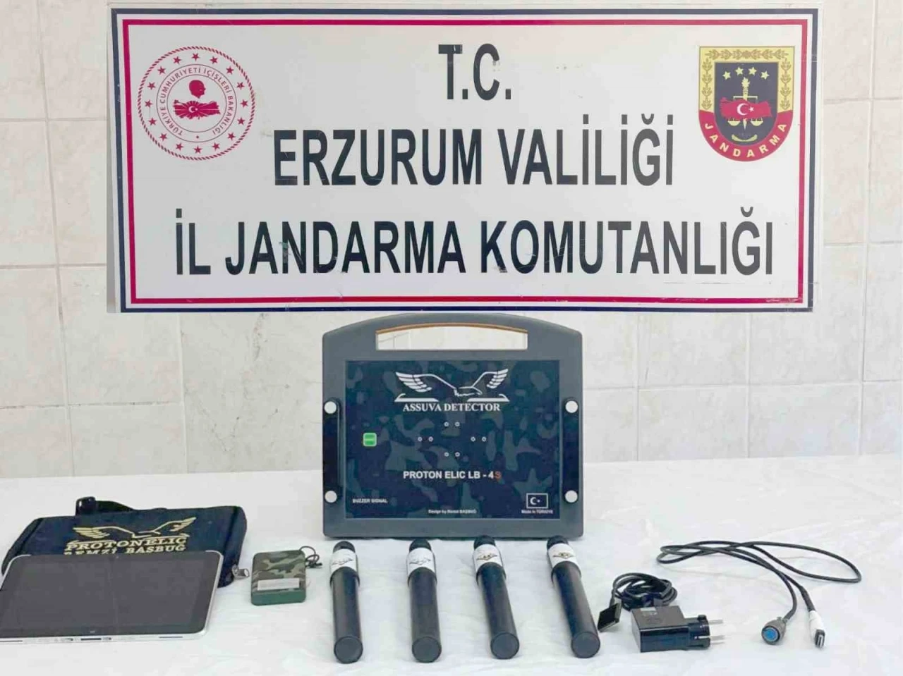 Edinilen bilgiye göre, Şenkaya İlçe Jandarma Komutanlığı sorumluluk alanında bulunan Kayalısu Mahallesi bölgesinde yer altı görüntüleme cihazı ile define aradığı tespit edilen 3 şahıs suç aletleriyle birlikte suçüstü yakalandı.
