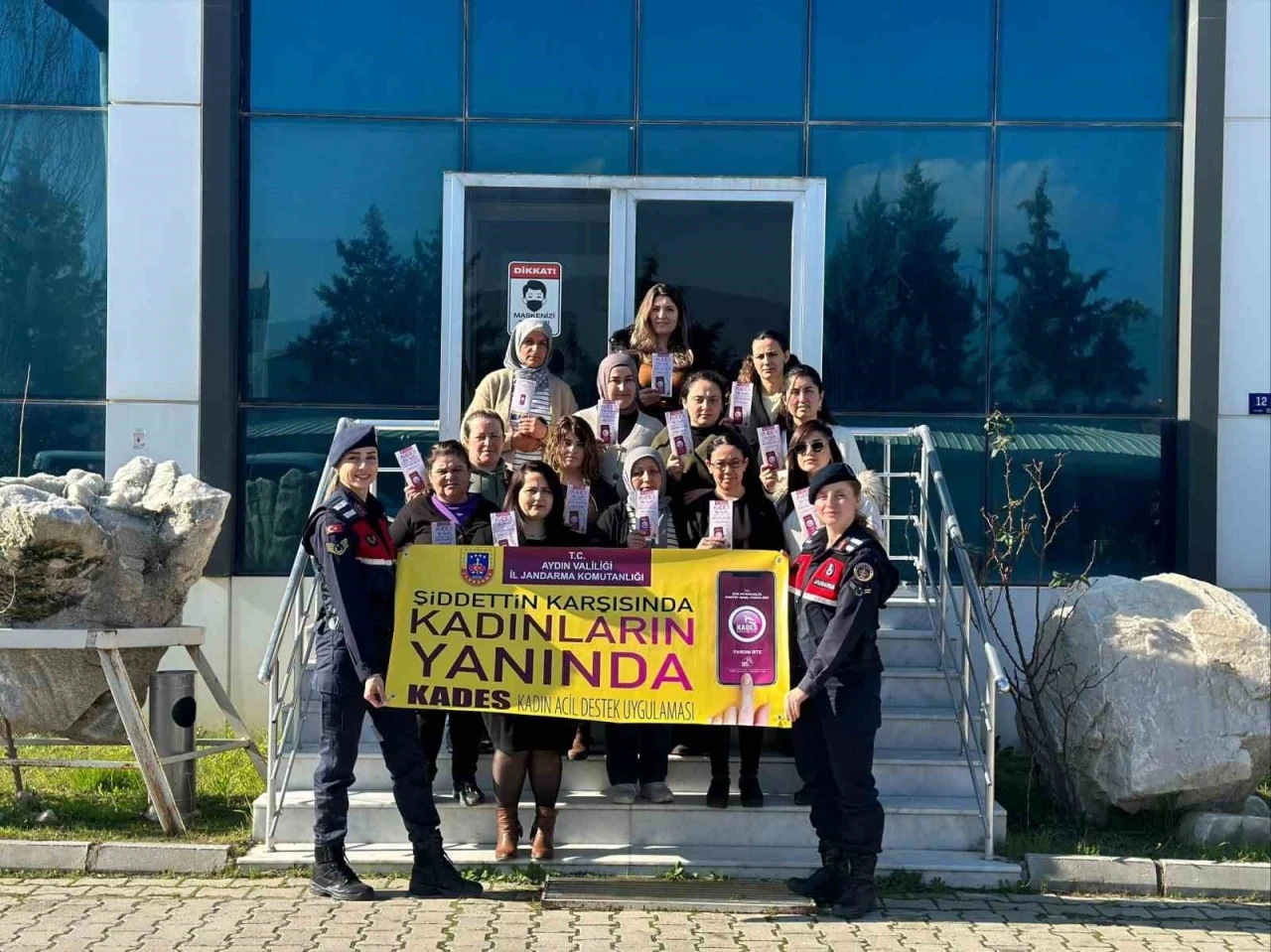 Aydın İl Jandarma Komutanlığı Aile İçi Şiddetle Mücadele ve Çocuk Kısım Amirliği ile Çine İlçe Jandarma Komutanlığı personelleri tarafından Çine ilçesinde bir fabrikada çalışan kadınlara yönelik etkinlik gerçekleştirildi. Yapılan ziyaretlerde fabrikada çalışan kadınlara 6284 Sayılı Kanun, başvuru mercileri, KADES uygulaması konularında tanıtım ve bilgilendirme yapıldı. Vatandaşların farkındalığını arttırmak amacıyla KADES pankartı açılan etkinlikte ayrıca kadınların telefonlarına KADES uygulamasının yüklenmesi konusunda yardımda bulunuldu. Bilgilendirme broşürlerinin de dağıtıldığı ziyarette kadına yönelik şiddete dikkat çekildi.
