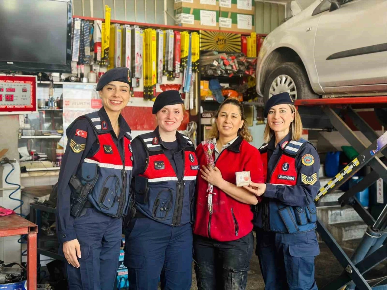 Aydın’da 8 Mart Kadınlar Günü dolayısıyla jandarma ekipleri kadınlara çiçek takdim ederek günlerini kutladı.